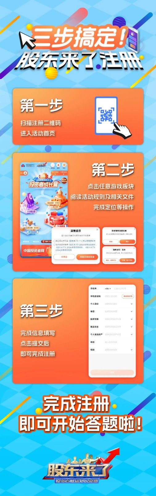 本次活動分為網(wǎng)絡(luò)初賽和電視決賽兩個階段。網(wǎng)絡(luò)初賽采用線上答題形式,答題平臺于5月15日8點正式面向公眾開放,共持續(xù)8周。通過“投資者成長營”帶投資者領(lǐng)略“讀心魔法屋”“個人闖關(guān)賽”“猜詞消消樂”“PK競技場”四大游戲玩法!比賽拼腦力,答題學(xué)知識!期待投資者通過輕松愉快的方式進一步學(xué)習(xí)權(quán)益知識等相關(guān)內(nèi)容。