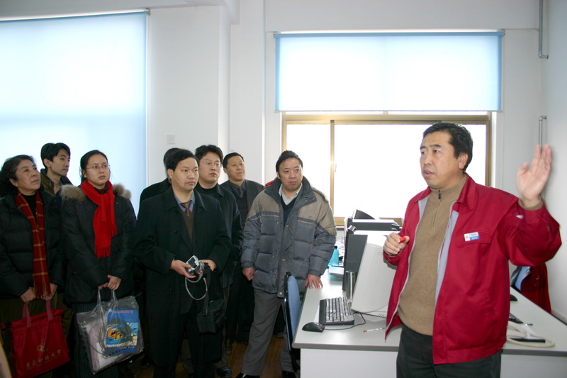 2006年1月14日,青島科技大學(xué)機電工程學(xué)院院長汪傳生以及學(xué)院教師30余人,在公司董事長袁仲雪、資深總工程師杜軍、副總經(jīng)理張焱、王金健、張澤恩等領(lǐng)導(dǎo)的陪同下,到公司進(jìn)行參觀,并與公司相關(guān)技術(shù)人員進(jìn)行了項目對接交流會。