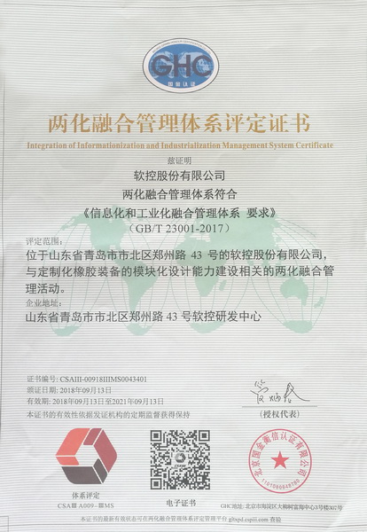 經(jīng)過(guò)貫標(biāo)評(píng)定專(zhuān)家組的第一、二階段評(píng)估審核,及國(guó)家工信部?jī)苫诤瞎芾眢w系評(píng)定工作委員會(huì)的復(fù)核和公示等環(huán)節(jié),軟控最終通過(guò)了國(guó)家工信部?jī)苫诤瞎芾眢w系評(píng)定并獲得證書(shū)。