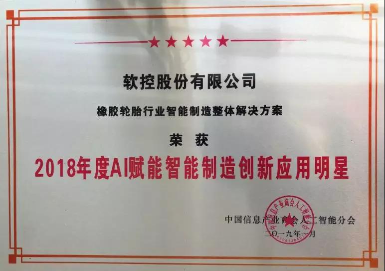 1月20日,由中國信息產(chǎn)業(yè)商會(huì)人工智能分會(huì)組織評(píng)選的2018年度信息產(chǎn)業(yè)創(chuàng)新發(fā)展明星(人工智能方向)企業(yè)名單揭曉,軟控股份有限公司憑借橡膠輪胎行業(yè)智能制造整體解決方案從眾多參評(píng)廠商的產(chǎn)品方案中脫穎而出,榮獲“2018年度AI賦能智能制造創(chuàng)新應(yīng)用明星”。