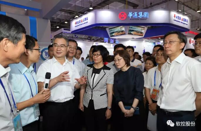 7月27日上午,在2019青島國際軟件創(chuàng)新融合博覽會上,山東省委常委、青島市委書記王清憲在青島市委常委、常務副市長薛慶國,高新區(qū)工委副書記、管委主任尚立群,青島市工信局局長姜波等領導陪同下蒞臨高新區(qū)展區(qū)軟控股份展位。