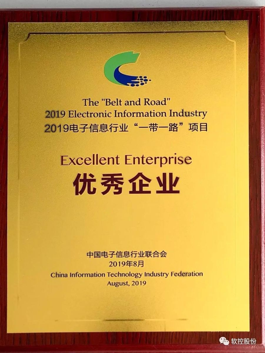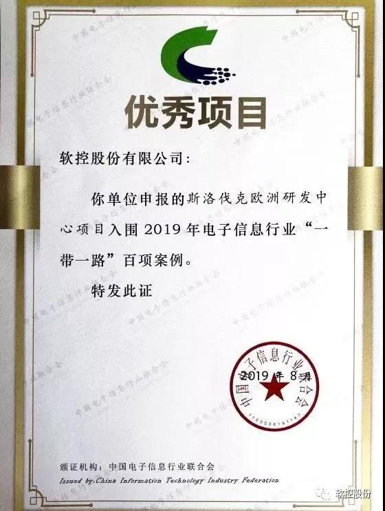 軟控股份有限公司榮獲2019電子信息行業(yè)“一帶一路”項(xiàng)目?jī)?yōu)秀企業(yè),軟控“斯洛伐克歐洲研發(fā)中心”項(xiàng)目成功入選2019年電子信息行業(yè)“一帶一路”百項(xiàng)案例。