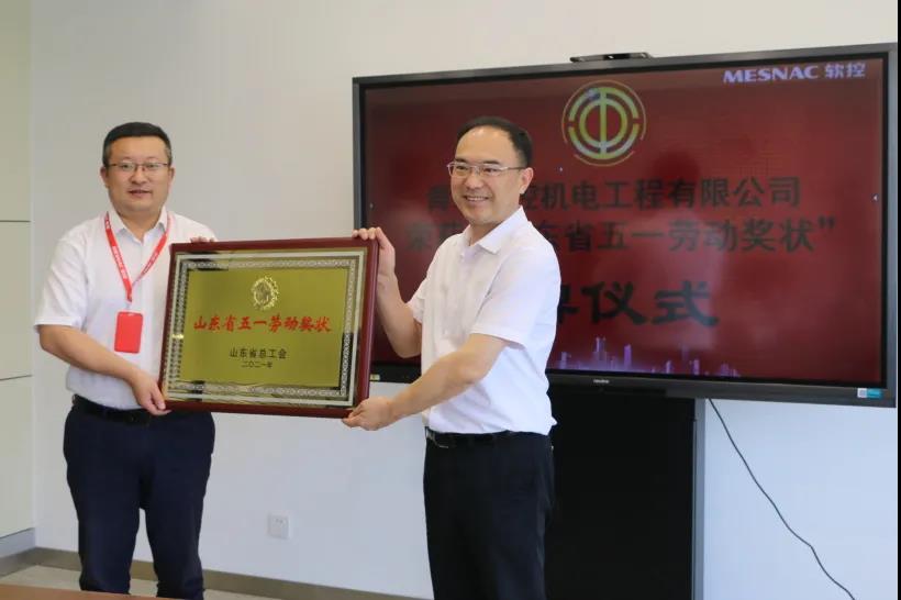 7月9日,膠州市總工會(huì)主席姜鵬、副主席孫衛(wèi)剛、生產(chǎn)部部長(zhǎng)胡強(qiáng)一行到膠州裝備產(chǎn)業(yè)園為青島軟控機(jī)電工程有限公司榮獲2021年“山東省五一勞動(dòng)獎(jiǎng)狀”進(jìn)行授牌。軟控黨委書記、副總裁魯麗娜代表公司對(duì)領(lǐng)導(dǎo)們的到來(lái)表示了熱烈的歡迎和衷心的感謝;軟控機(jī)電公司總經(jīng)理武守濤代表公司接受授牌。
