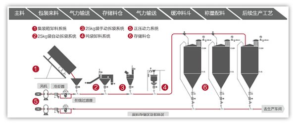 用于塑料改性的多個(gè)生產(chǎn)過程(包括主料、添加劑)的自動(dòng)輸送與配料系統(tǒng)。整個(gè)過程清潔環(huán)保,粉體處于密閉輸送狀態(tài),與外界隔絕,具體流程可按客戶具體生產(chǎn)要求制定。