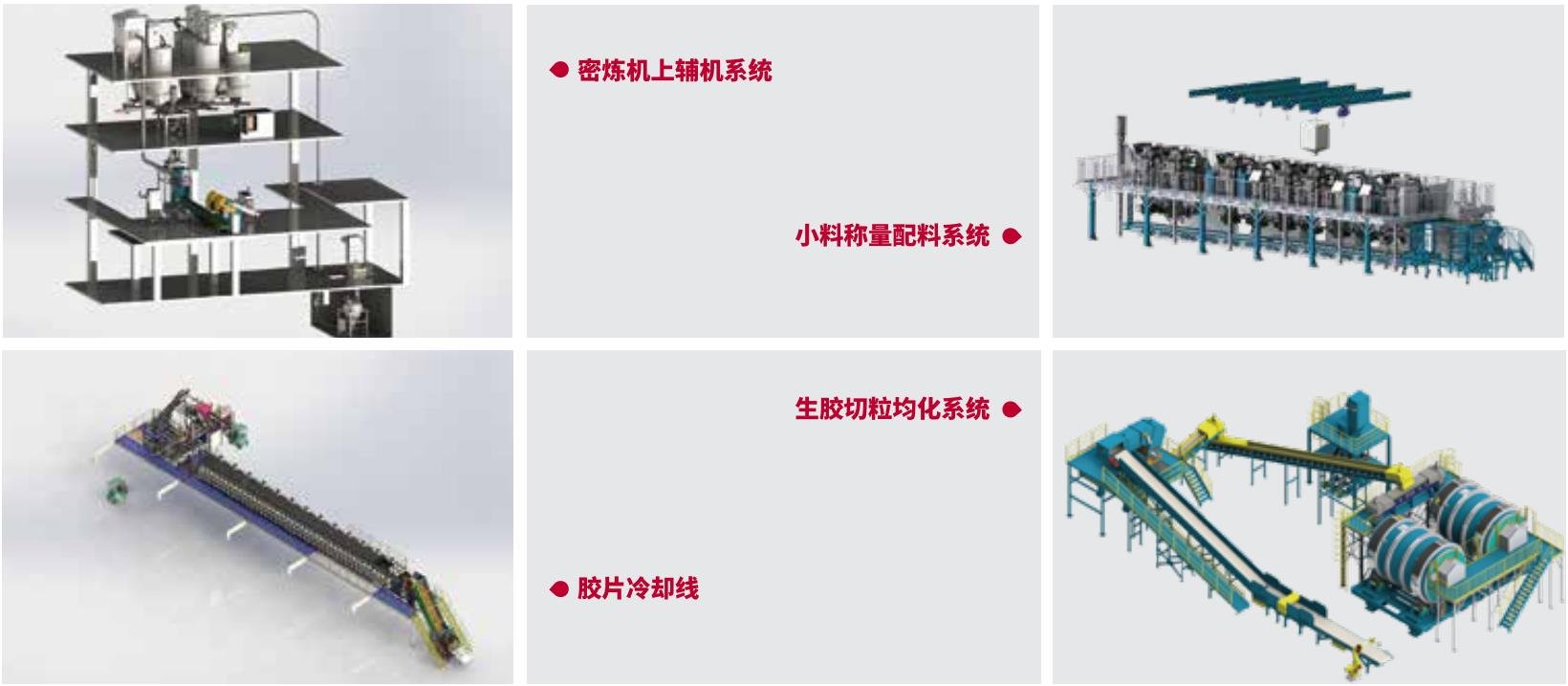 通過密煉機上輔機系統(tǒng)、高精度稱量配料系統(tǒng)、生膠切粒均化系統(tǒng)和自動翻膠系統(tǒng)等先進自動化裝備實現(xiàn)車間自動稱量和自動生產(chǎn),運用AGV、RGV、EMS、機器人和立體庫等先進自動化倉儲物流設(shè)備實現(xiàn)車間自動物流和自動存儲,結(jié)合條碼、RFID、MES和機器人等先進信息化技術(shù)實現(xiàn)車間信息化和數(shù)字化,運用人工智能、大數(shù)據(jù)分析、APS高級排產(chǎn)算法等智能技術(shù)實現(xiàn)車間智能生產(chǎn)和智能服務(wù),為客戶提供高效率、高質(zhì)量、低成本、低能耗、綠色環(huán)保的智能煉膠車間。
