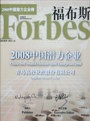日前,全球著名雜志《福布斯》中文版公布了2008中國(guó)潛力企業(yè)榜單,青島軟控以其突出的成長(zhǎng)性和發(fā)展?jié)摿Q身榜單。