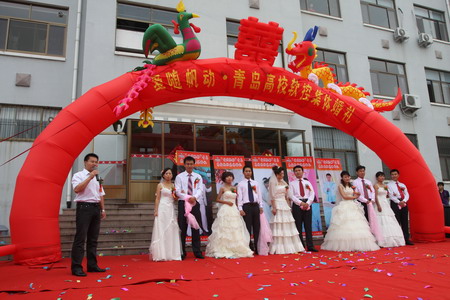 鞭炮齊鳴鑼鼓鬧,金獅起舞祥云繞。9月20日,青島軟控“愛隨帆動”集體婚禮隆重舉行。在這個收獲的季節(jié)里,五名年輕員工也收獲了各自的愛情,與愛侶喜結(jié)連理。公司領(lǐng)導及全體員工共同為他們的愛情作了見證。
