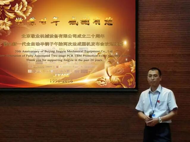 北京敬業(yè)總經理孫林在致辭中說到,北京敬業(yè)歷經三年創(chuàng)新研發(fā)的全新一代高速兩次法輪胎成型機問市,凝聚了敬業(yè)人的智慧與心血,承載著各位客戶對敬業(yè)人的期待與希望。敬業(yè)人將始終秉承“成型高性能輪胎,成就高品質用戶”的宗旨,不斷努力、勇于創(chuàng)新、精于專業(yè),服務于行業(yè)及社會。