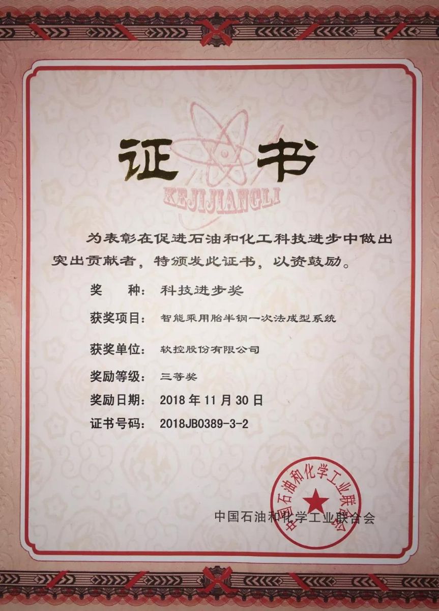 12月3日,由中國石油和化學工業(yè)聯(lián)合會主辦的全國石油和化工科技創(chuàng)新大會在北京隆重召開。大會隆重表彰了2018年度全國石油和化工科技進步獎項目,軟控股份有限公司“智能乘用胎半鋼一次法成型系統(tǒng)”榮獲中國石油和化學工業(yè)聯(lián)合會科技進步三等獎。