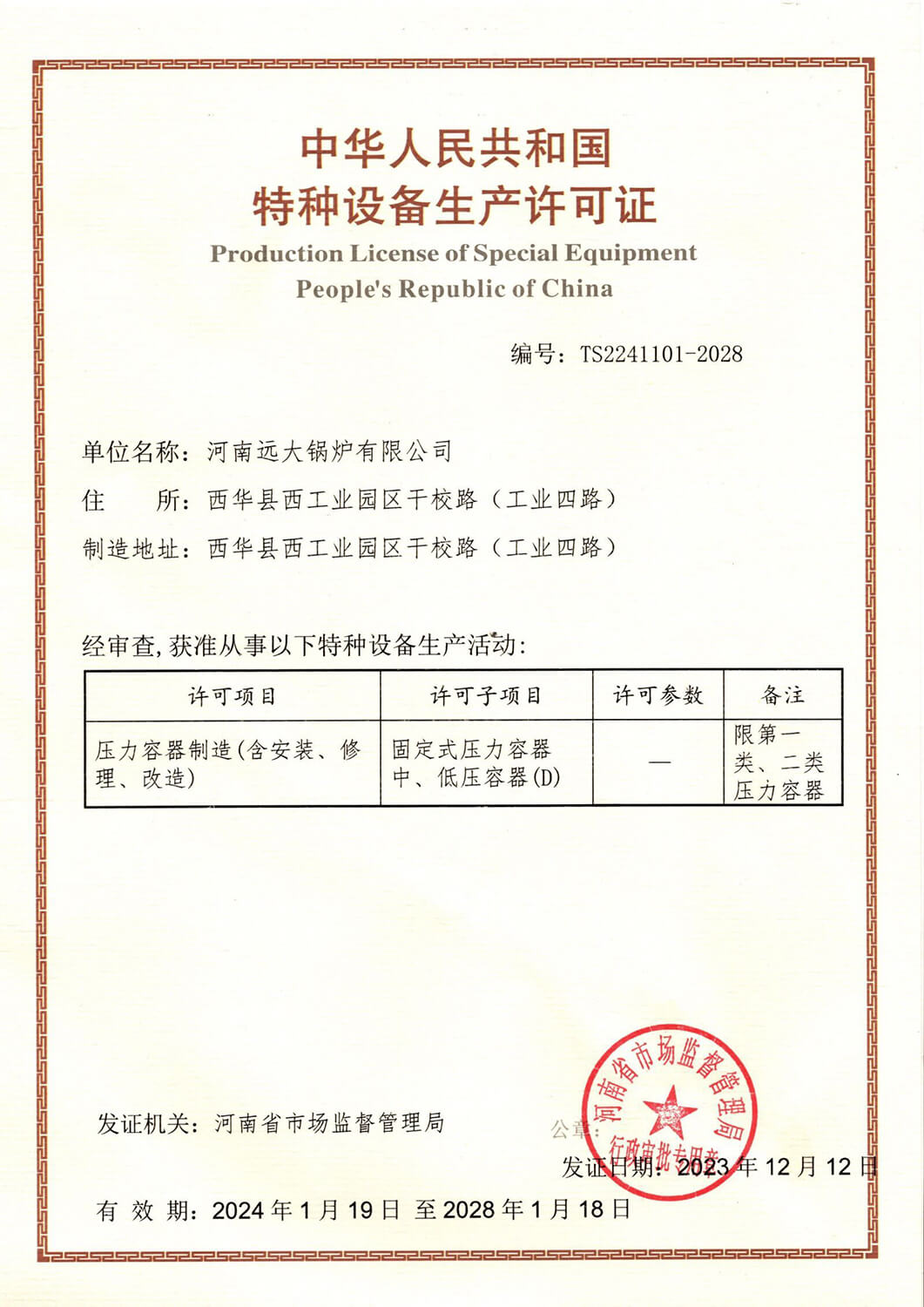 壓力容器設(shè)計(jì)及制造資質(zhì),并通過