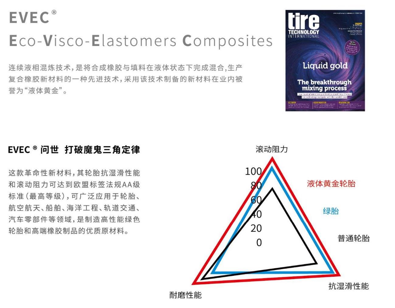 這款革命性新材料,其輪胎抗?jié)窕阅芎蜐L動阻力可達到歐盟標(biāo)簽法規(guī) AA 級標(biāo)準(zhǔn) (最高等級),可廣泛應(yīng)用于輪胎、航空航天、船舶、海洋工程、軌道交通、汽車零部件等領(lǐng)域,是制造高性能綠色輪胎和高端橡膠制品的優(yōu)質(zhì)原材料。