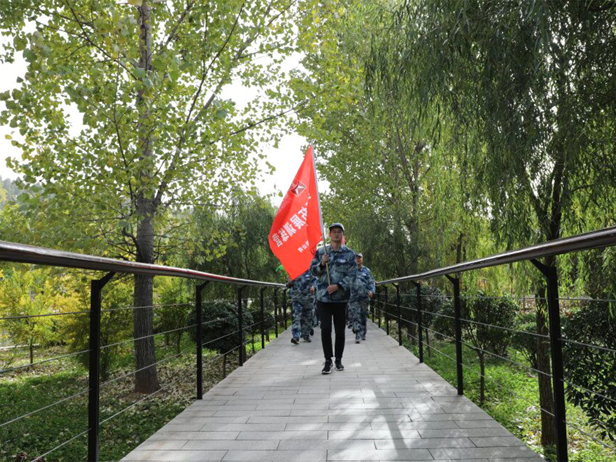 徒步青年洞!拓展訓練第二個項目,全體人員分成四隊,以隊為單位,開啟“徒步青年洞競賽”活動,全體人員斗志昂揚,不畏艱苦,徒步5公里,最終無一人放棄,全員到達終點。